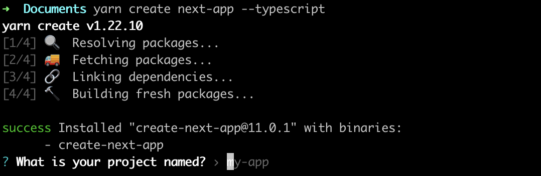 > yarn create next-app --typescript