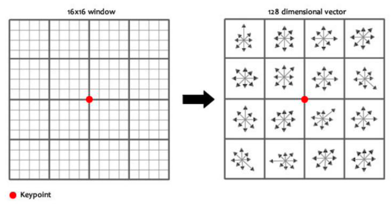 $$ - 이 128D descriptor가 keypoint의 “지문” 역할을 하며, 다른 이미지에서도 같은 keypoint를 인식할 수 있게 한다.