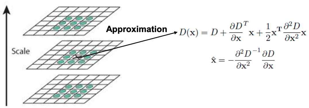- DoG에서 극댓값/극솟값(local extreme) 찾음. \(D(x)\)를 \(x\)에 대해 미분 후, 0으로 둬서 구함